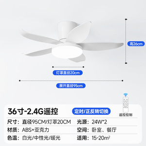 36寸五叶白色+原木色ABS扇叶《吸顶款》