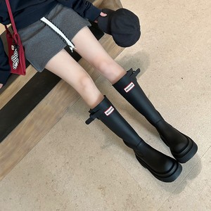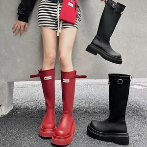 防滑高筒红色骑士靴2025秋冬新款户外露营雨 鞋厚底不过膝长筒靴