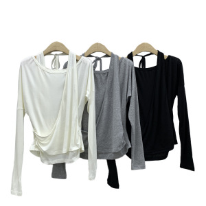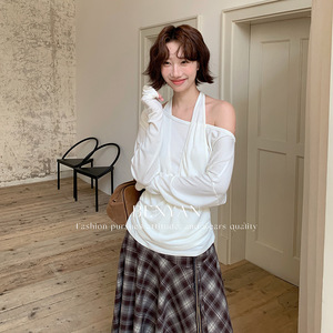 BENYAN本言 秋季法式温柔风假两件设计挂脖长袖露肩针织衫女82278
