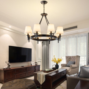 美式吊灯现代简约客厅卧室餐厅吊灯乡村复古布艺吊灯复古中山灯具