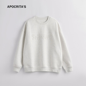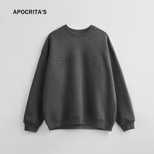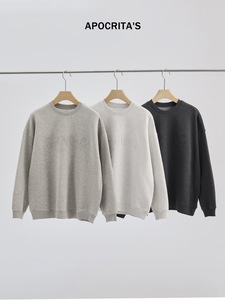APO男装 |跨境潮牌重磅圆领卫衣男秋季宽松贴布绣长袖T恤内搭上衣