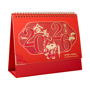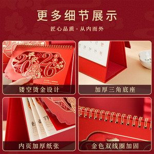 新款国风新年喜庆台历办公桌面马年镂空烫金红色日历企业台历定制