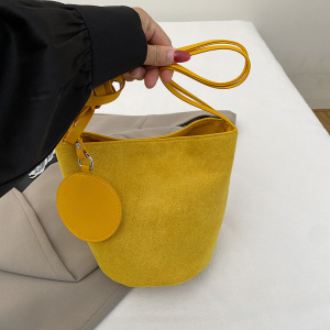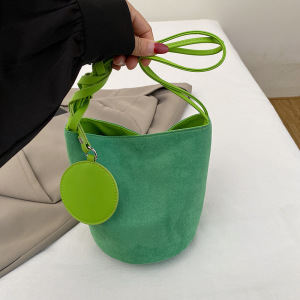 跨境时尚新款水桶包包女小众韩版百搭单肩包复古通勤麂皮绒手提包