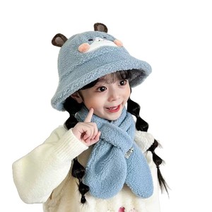 儿童帽子围脖两件套冬季女童可爱兔子保暖盆帽男童宝宝冬天渔夫帽