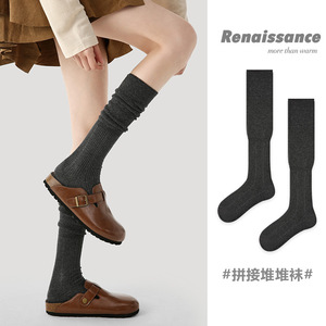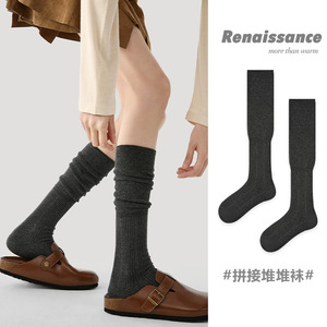 Renaissance原创女袜秋冬长筒袜无骨过膝堆堆袜百搭纯色棉袜子女