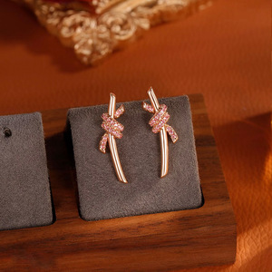 高版本镶钻锆石绳结耳钉女轻奢小众欧美ins耳饰通勤气质百搭耳环