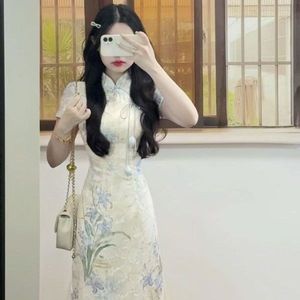 巨好看【一梦江南】新中式夏日新款清冷感淡冷系剪花旗袍连衣裙