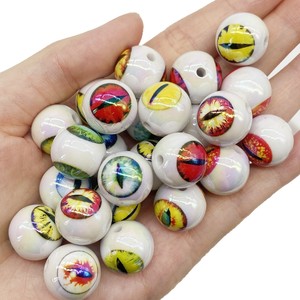 万圣节亚克力uv彩印花眼球圆珠diy手机链饰品配件串珠笔装饰珠子
