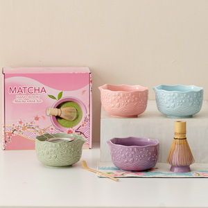 轻奢九紫离火带嘴抹茶碗套装茶筅抹茶工具日式风点茶碗搅拌器彩盒