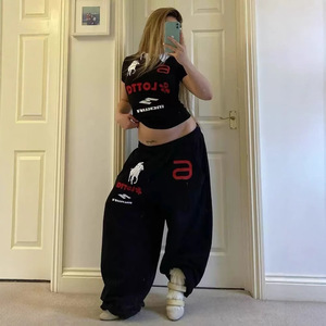 Mowalola ATL天使战马刺绣baggy宽松阔腿运动裤卫裤opium YVL风格