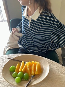HAVE U 2025秋季韩系学院风休闲条纹设计感撞色polo长袖t恤上衣