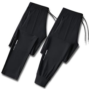 加大码男装加肥佬运动休闲长裤高弹力直口春夏松紧腰束小脚款冰丝