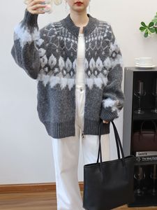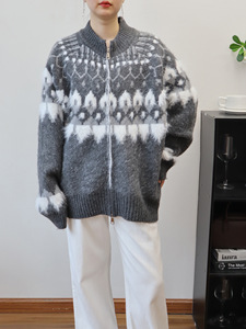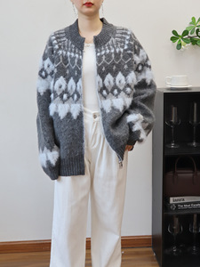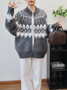 2025秋冬新款韩版宽松拼接仿水貂绒针织开衫拉链慵懒风毛衣外套女