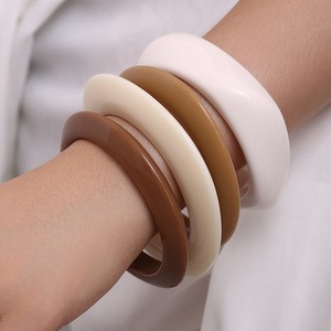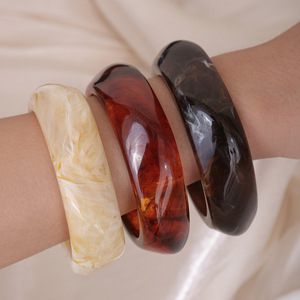 跨境爆款饰品树脂圆形女士手镯套装时尚百搭手饰大理石纹复古手环