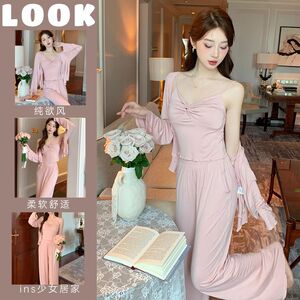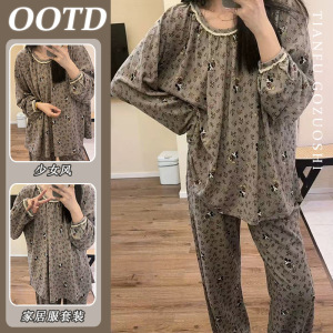 【优质仿棉】豹纹星星印花睡衣女款秋季新款休闲家居服套装