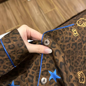 6967-开衫棕色豹纹星星双长