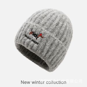 新款韩系男女秋冬季刺绣小狗堆堆帽氛围感大头围纯色针织毛线冷帽