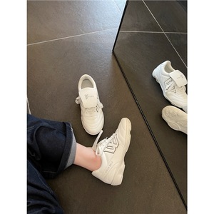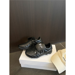真皮翻盖足球运动鞋2025年新款复古百搭厚底系带休闲薄底德训鞋女