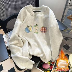 秋冬季潮牌女装圆领卫衣男重磅情侣宽松潮流加绒加厚女士洋气上衣