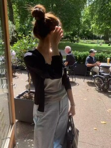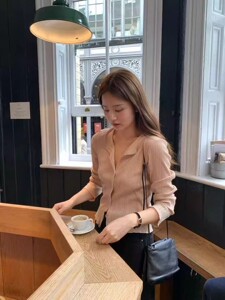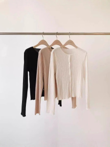 现h韩国东大门ounce2025秋季新款简约纯色褶皱长袖打底衫女上衣