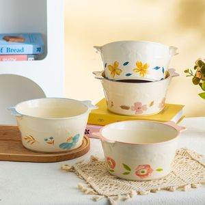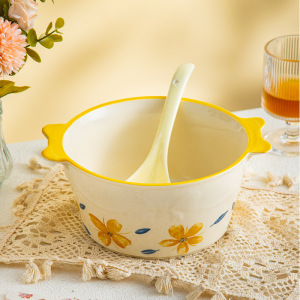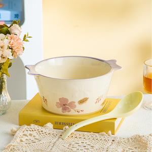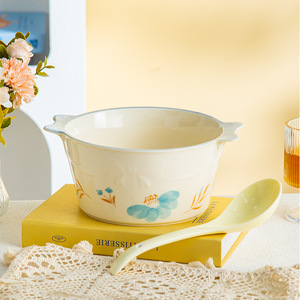 大碗陶瓷碗大号泡面碗陶瓷餐具高颜值双耳汤碗拉面碗可爱碗具批发