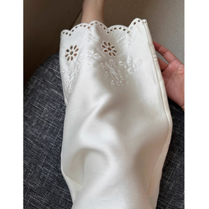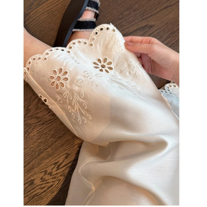 白色新中式珠光镂空刺绣阔腿裤女夏新款高级气质垂感缎面九分裤子