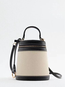 欧美2025新款女包春夏新款 撞色盒形迷你单肩斜挎水桶包休闲女包