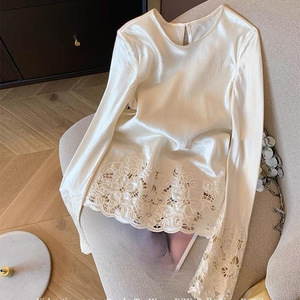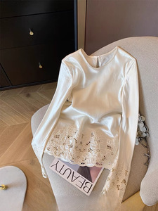 新中式国风下摆镂空上衣2025新款春季简约圆领时尚内搭外穿打底衫