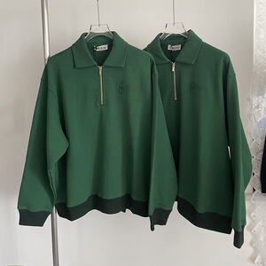 25秋冬半拉链宽松polo领半拉链卫衣Oversized男女同款慵懒风上衣