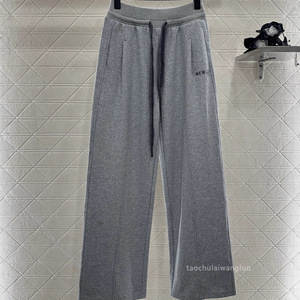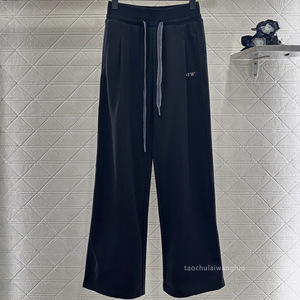 TOMOON纯色抽绳松紧高腰休闲裤气质简约显瘦百搭阔腿长裤C-K81088