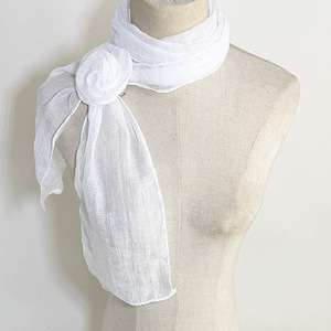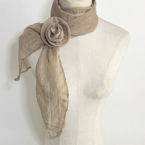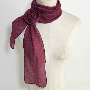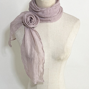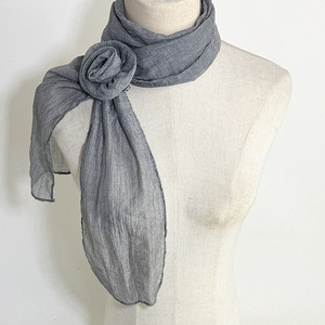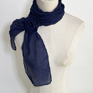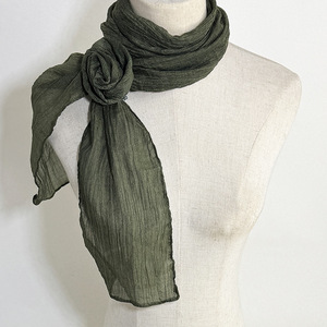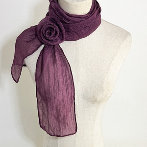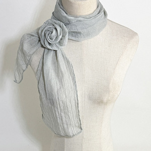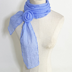 2025秋季新款皱布玫瑰花朵纯色围脖女百搭气质丝巾多功能飘带批发
