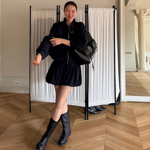 韩国东大门2025秋新款复古休闲宽松显瘦立领夹克外套短款裙裤套装