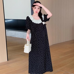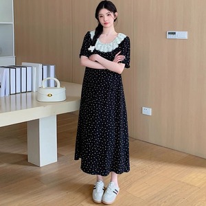孕妇连衣裙2025新款夏季孕期法式蕾丝花边黑色碎花裙夏款孕妇裙子