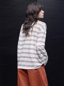 moment粉白条纹长袖针织t恤女2025早秋新款轻薄防晒百搭减龄时尚