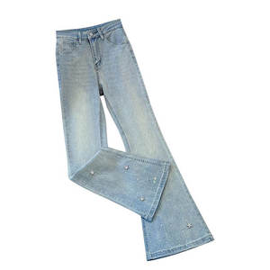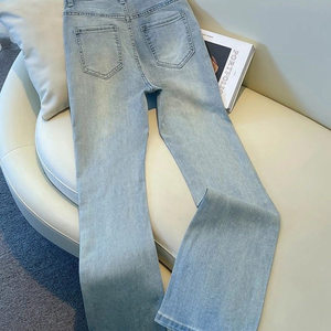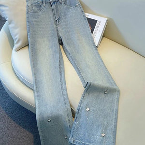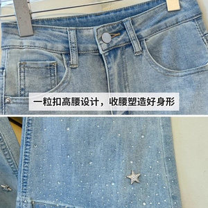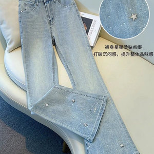小个子微喇牛仔裤女夏季2025新款星星烫钻高腰显瘦遮跨拖地喇叭裤