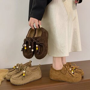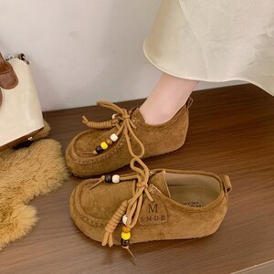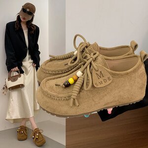 5CM内增高小鹿袋鼠勃肯鞋女2025秋季新款系带串珠百搭休闲单鞋女