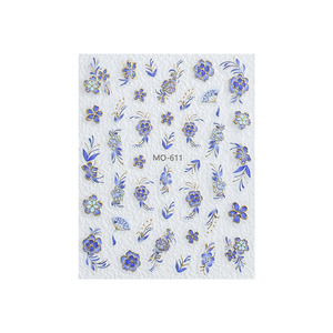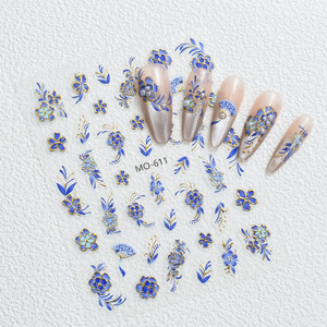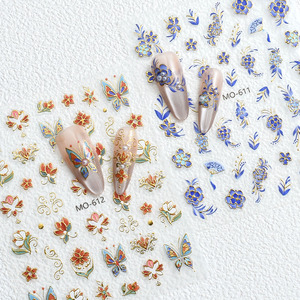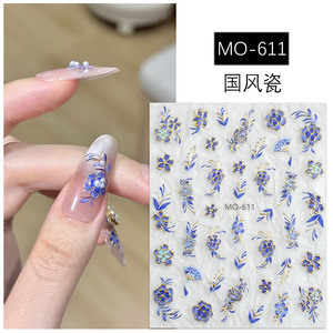 国风青花瓷美甲贴纸浮雕立体金边蝴蝶典雅花团锦簇diy穿戴指甲贴