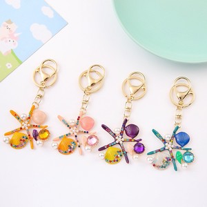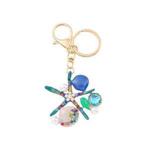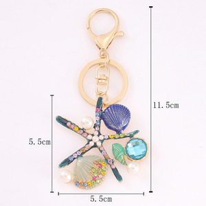滴油水钻金属珍珠海星钥匙扣环圈钥匙挂件海洋动物贝壳鱼钥匙链