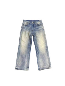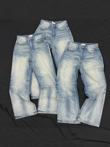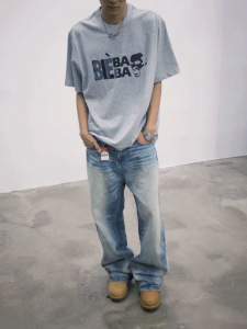 美式重磅蓝牛王vintage水洗做旧A字版型宽松直筒牛仔裤cleanfit男