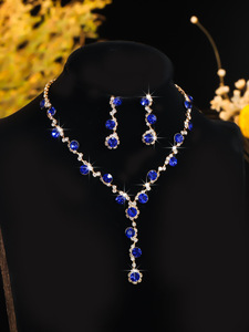 T0033-6 金-蓝色项链套装(带手链戒指)