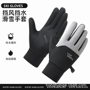 保暖手套拼色秋冬季男女士加绒防水防寒滑雪防滑触屏户外骑行手套