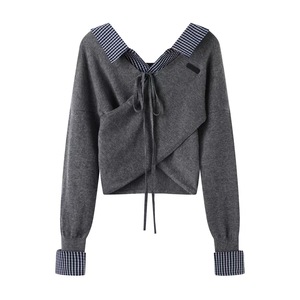 现货2025秋季新款设计师款系带假两件不规则短款针织衫RL70601100