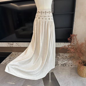 波嬉度假米白色A字半身裙女夏季薄款裙子假日复古低腰长裙