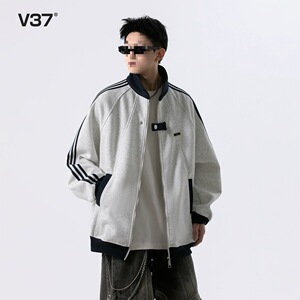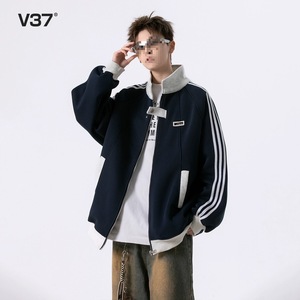 美式学院风外套男25年春季撞色拼接潮流百搭青少年条纹潮流夹克棉