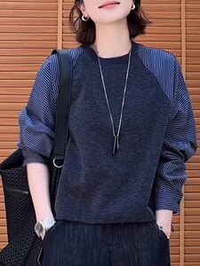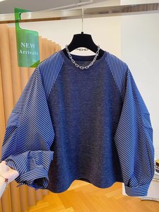 韩系高级感条纹拼接卫衣女秋2025新款宽松薄款别致独特超好看上衣