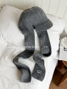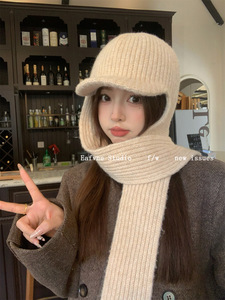 时髦精博主款针织巴拉克拉法帽围巾一体复古秋冬保暖鸭舌护耳帽女