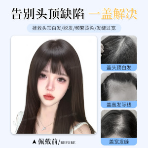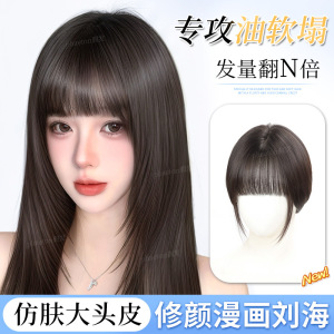 透气肤网刘海假发片女头顶真发蓬松高颅顶自然漫画假刘海补发片