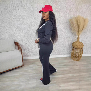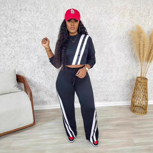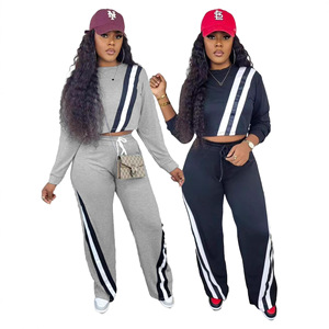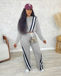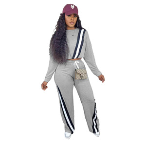 D8723 亚马逊欧美秋冬女士休闲运动裤女拼接宽松直筒阔腿长裤现货