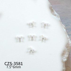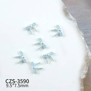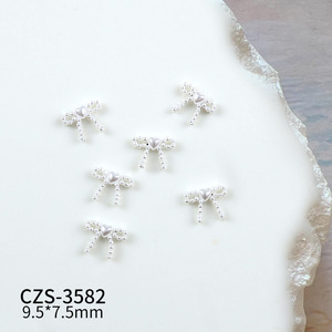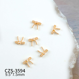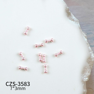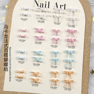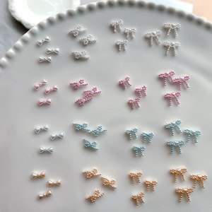 新款高亮珍珠蝴蝶结美甲饰品马卡龙彩色百搭法式立体领结指甲配饰
