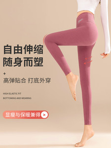 德绒打底双面磨毛内穿秋裤女舒适保暖护腰可外穿高腰九分加绒棉裤